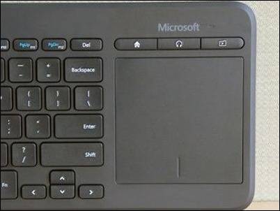 El nuevo teclado de Microsoft es a primera vista muy parecido al que utilizamos habitualmente en nuestros equipos de sobremesa. Sin embargo, destaca por incluir una superficie táctil (como el touchpad de los portátiles) con las que podrás desplazar el cursor desde tu asiento sin la necesidad de usar un ratón